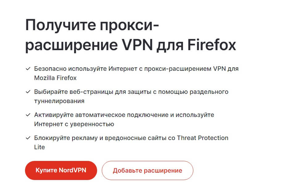 Расширение на браузер от Firefox устанавливается двумя способами: через магазин расширений в вашем приложении или через официальный сайт nordvpn.com. Во втором случае вам необходимо предварительно включить сторонний VPN — сайт NordVPN заблокирован в России.